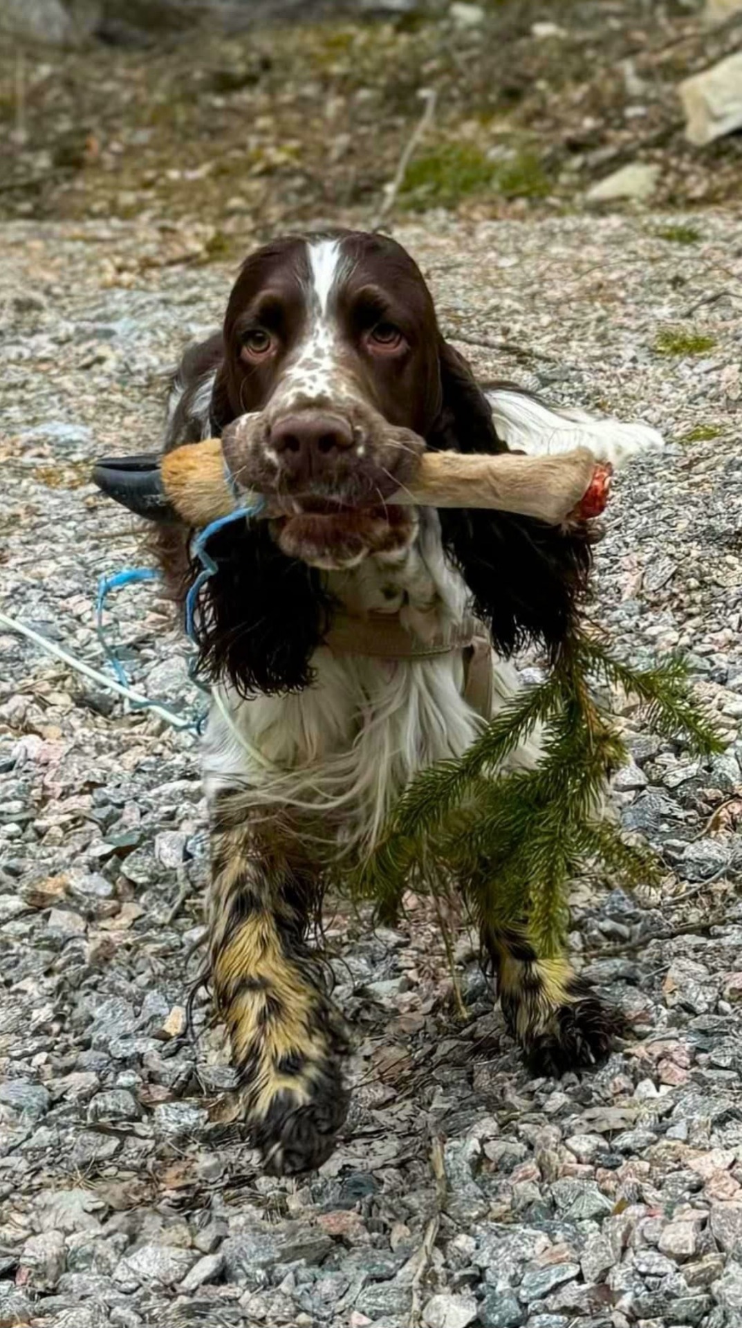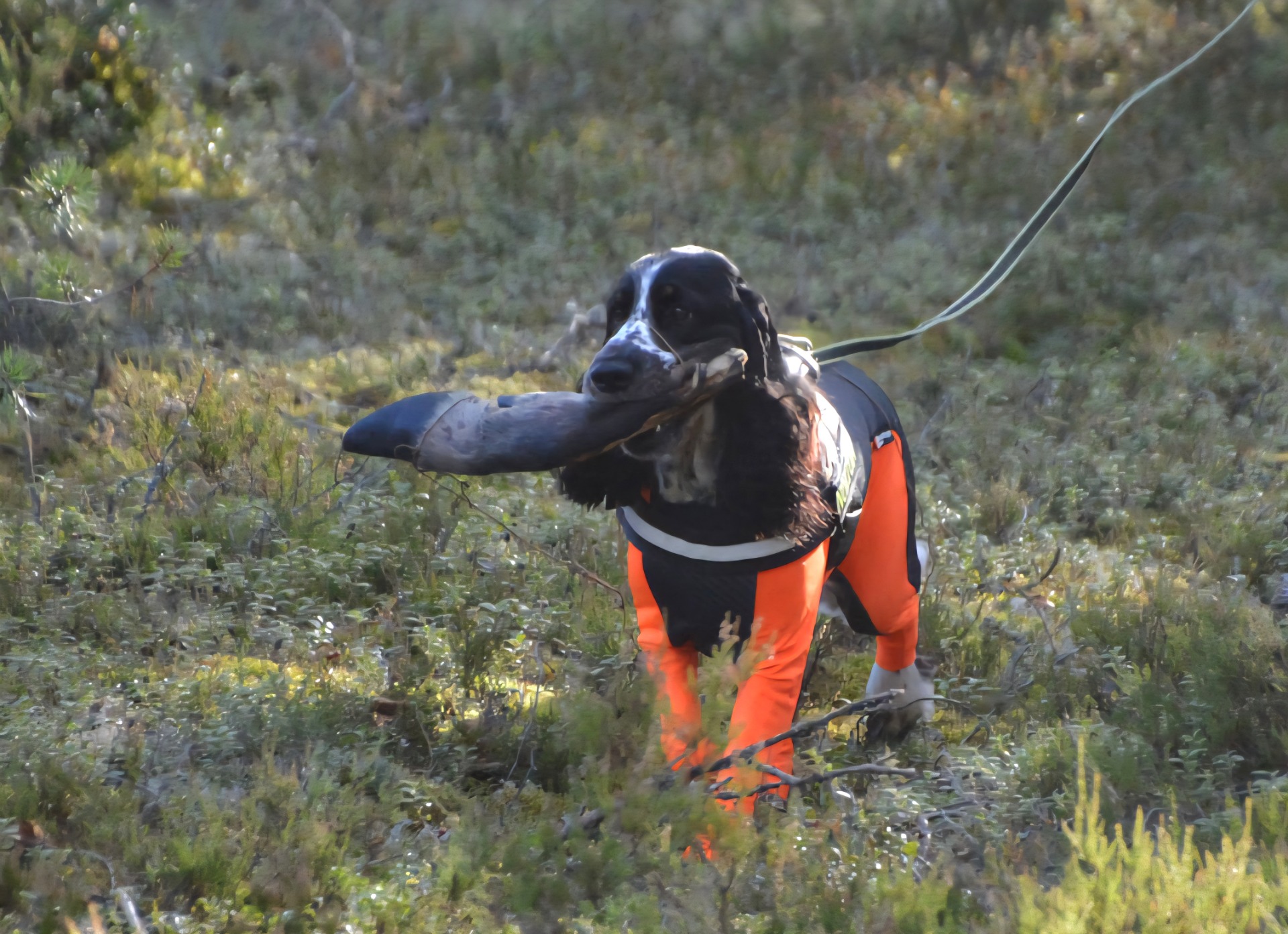Med föraren i lina bakom sig spårar hunden upp ett fiktivt blödande vilt djur